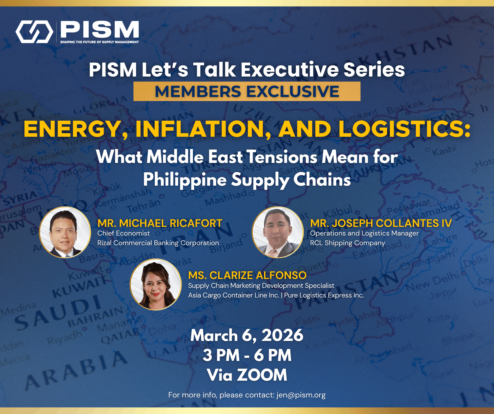 PISM brings together leading voices to unpack how energy volatility, inflationary pressures, and logistics disruptions stemming from Middle East tensions are reshaping Philippine supply chains.